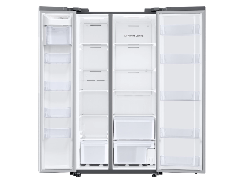Experience the sleek and spacious design of Samsung’s 27.4 cu. ft. Side-by-Side Refrigerator. Its modern, minimalist look blends seamlessly into any kitchen décor, while the fingerprint-resistant finish keeps it looking clean with less effort. With over 10% more storage capacity than previous models, this fridge gives you ample room for all your groceries. The adjustable top freezer shelf and flexible storage options make it easy to organize items of all sizes.
