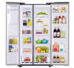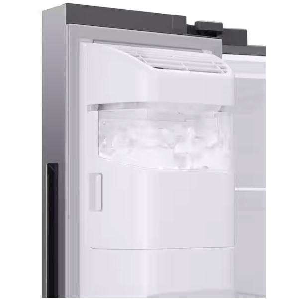 Experience the sleek and spacious design of Samsung’s 27.4 cu. ft. Side-by-Side Refrigerator. Its modern, minimalist look blends seamlessly into any kitchen décor, while the fingerprint-resistant finish keeps it looking clean with less effort. With over 10% more storage capacity than previous models, this fridge gives you ample room for all your groceries. The adjustable top freezer shelf and flexible storage options make it easy to organize items of all sizes.